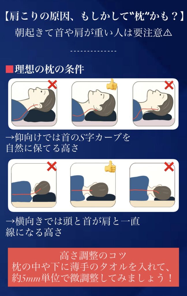 肩こりの一因として「自分に合っていない枕」が関係していることがあります。