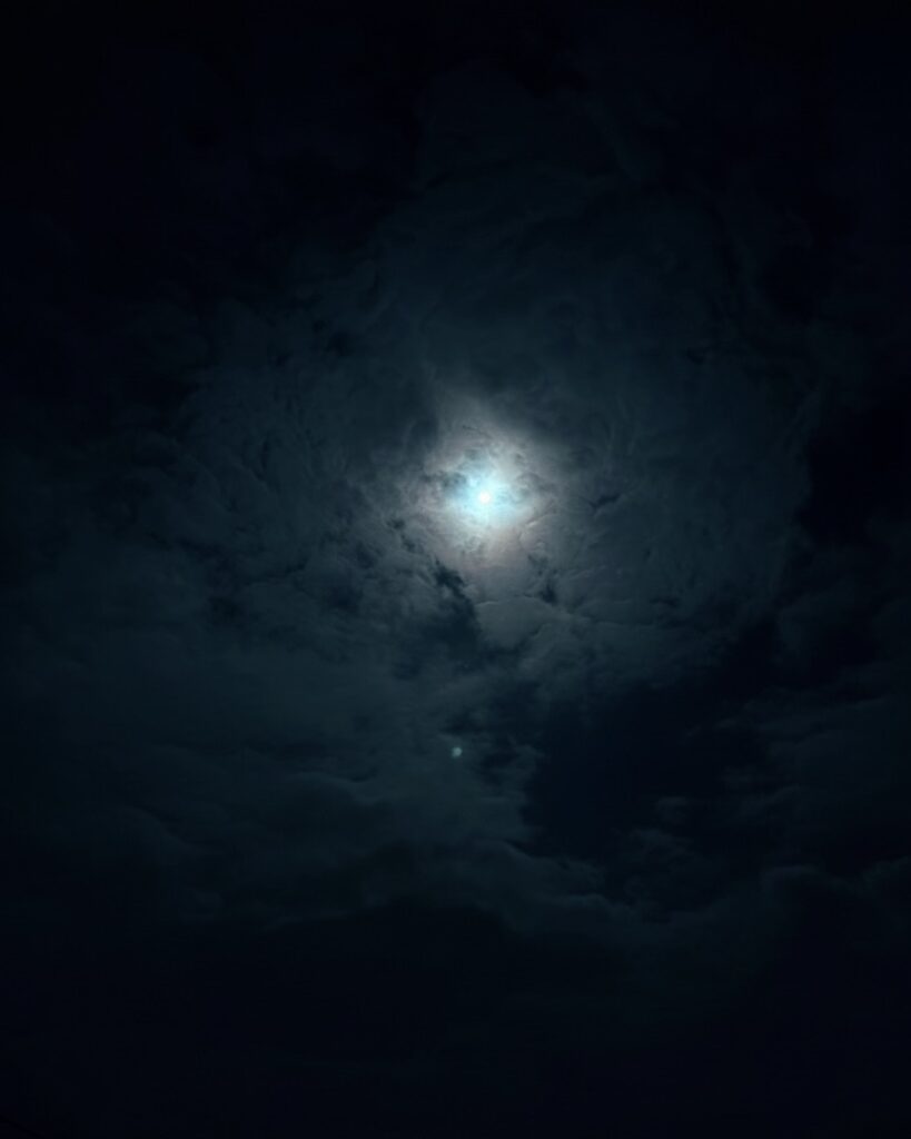 夜空に浮かぶ月がとても鮮明で、雲の間から見える光が幻想的でした。