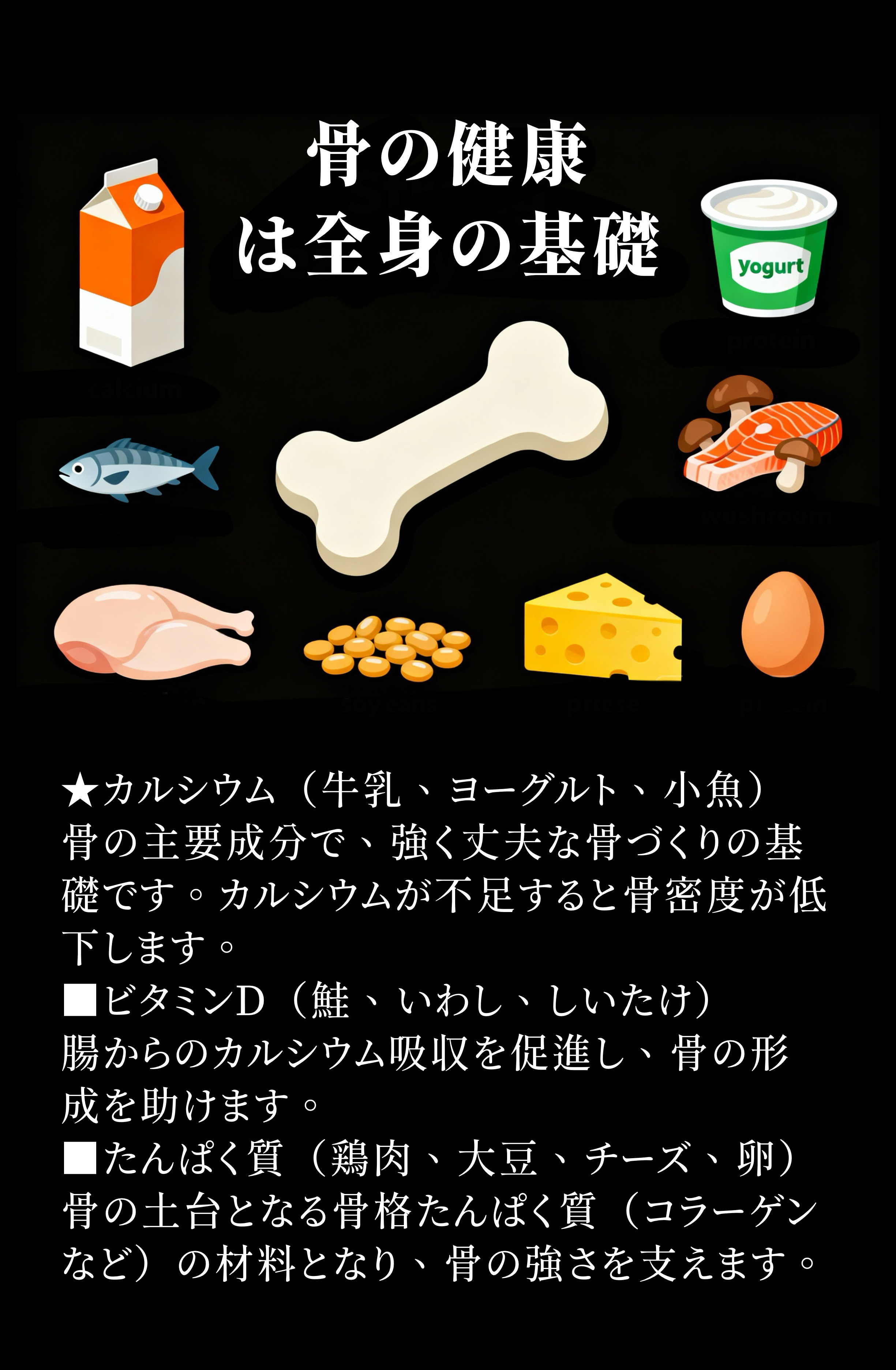 何歳になっても、日々の食事から丈夫な骨づくりを意識することが大切です。